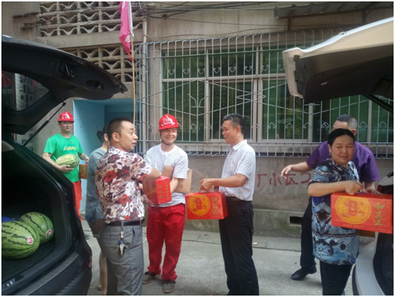7月26日,隊(duì)黨委成員、副隊(duì)長(zhǎng)郭培國(guó)帶領(lǐng)隊(duì)工會(huì)、隊(duì)安全科一行到中大工勘院東坡亭等項(xiàng)目“送清涼”,為奮戰(zhàn)在一線工地的人員送去西瓜、涼茶等解暑物資。