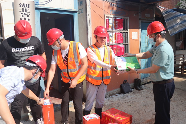 8月5日,副隊(duì)長戴志強(qiáng)帶隊(duì)到中大工勘院山湖名城5#樓沖孔灌注樁樁基工程現(xiàn)場“送清涼”,為烈日下堅(jiān)守一線的項(xiàng)目部工作人員發(fā)放防暑降溫物資。