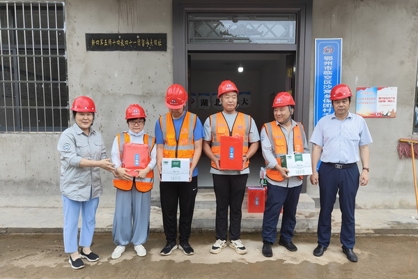 7月5日,黨委書記汪宏敏帶隊到中大公司承接的鄂州市臨空區(qū)沙窩鄉(xiāng)保團村千秀谷崩塌治理工程施工現場送清涼。